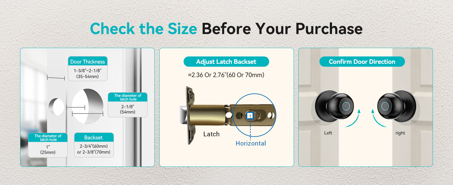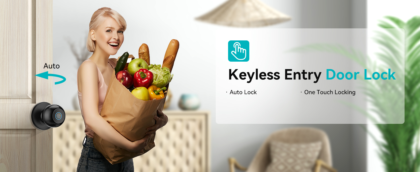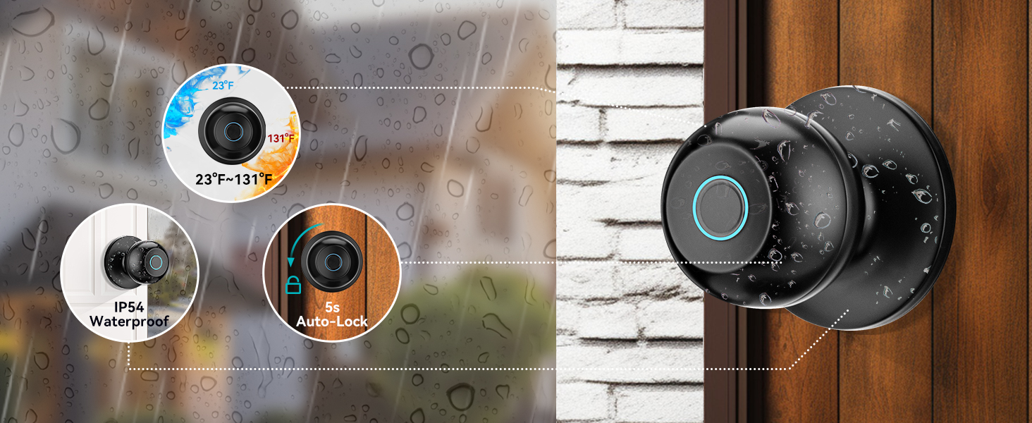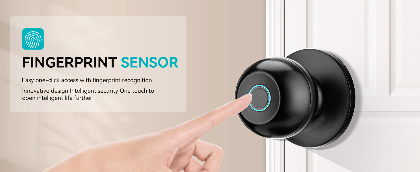 Smart Door Locks: Thumbprint Door knob is made of aluminium alloy material, durable and long-lasting, the fingerprint sensor adopts the latest biometric fingerprint access control technology, It can recognize your thumbprint within 0.1 seconds, store 20 fingerprints, and 5s Auto locking feature to ensure your home is safe.