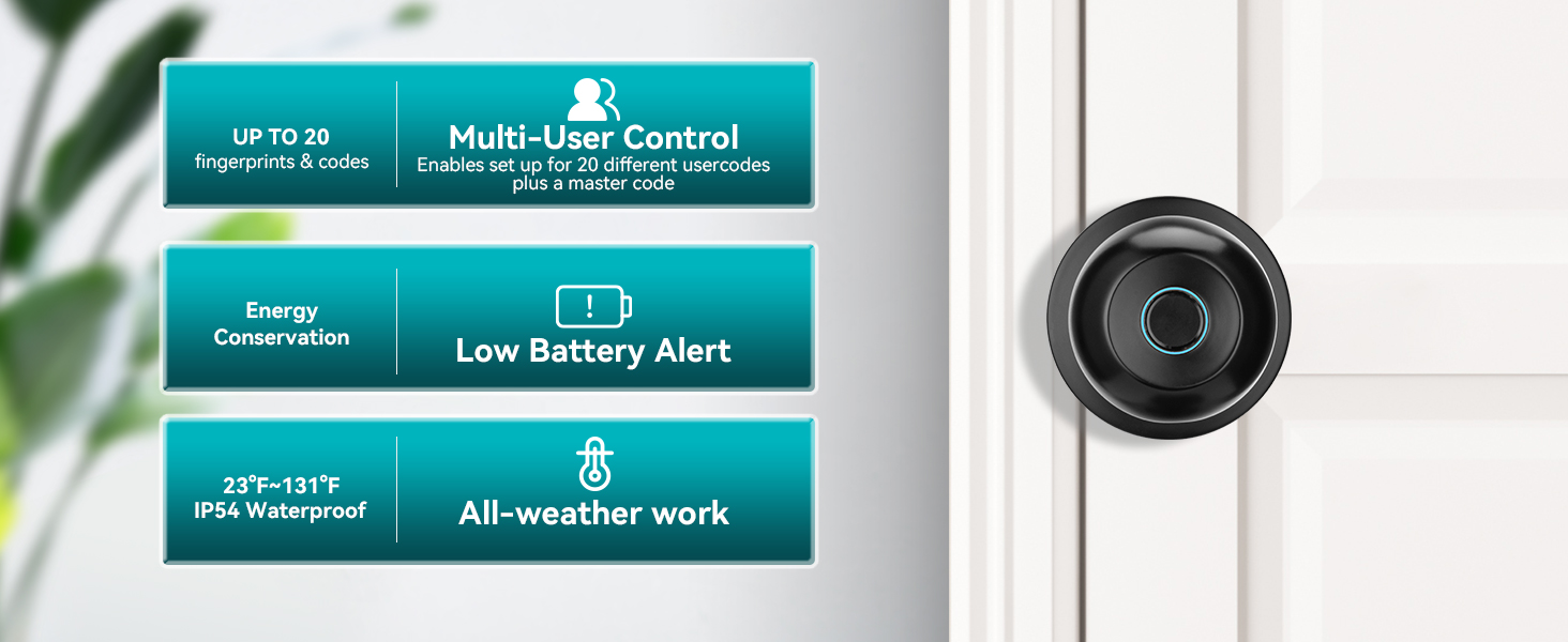 Keyless Entry Door Lock: Fingerprint door lock supports multiple ways to unlock, 20 fingerprints, 2 mechanical keys and APP control to unlock. Suitable for doors of bedroom, home, office, apartment, garage, storeroom, warehouse, basement and so on